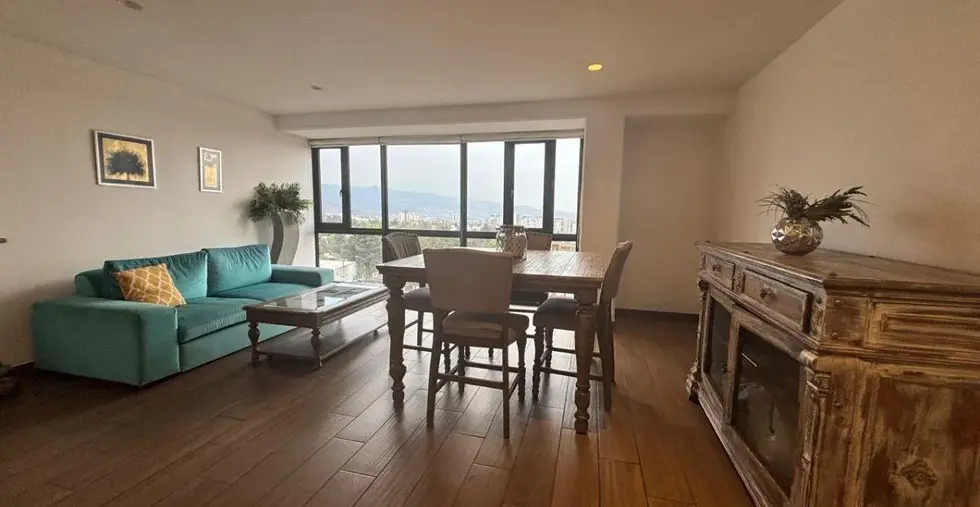 Vive en un departamento con vista espectacular hacia Vista Hermosa! El departamento se renta AMUEBLADO Y EQUIPADO. Cuenta con tres recámaras, la principal con baño completo y closet, la segunda recámara tiene closet, el baño completo esta afuera de la recámara. Tiene Family Room, cuarto de lavado, cocina integral y equipada. Tiene grandes amenidades como alberca, jacuzzi, spa, coworking, salón de eventos, salón de yoga o box, área de juegos infantiles, ludoteca, cafetería que tiene el servicio de llevarte los alimentos a tu departamento para que no tengas que salir, gimnasio muy equipado, terrazas y área de mascotas. se encuentra en el piso 10, ya incluye mantenimiento. Tiene accesibilidad para personas discapacitadas. Cuenta con tres lugares de estacionamiento techados. Cuenta con seguridad las 24 horas. Se encuentra muy cerca del Centro Comercial Santa Fe y del Parque la Mexicana. Cerca encontraras colegios y universidades, restaurantes , farmacias y grandes empresas. No te pierdas la oportunidad de vivir ahi!!. Es con póliza jurídica.